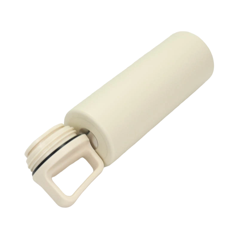 This portable thermos bottle features a minimalist straight body design with clean lines and a stylish, modern look. The lid is equipped with a sturdy handle for easy carrying. Available in two sizes: 350ml and 600ml, it meets both daily and extended hydration needs. The smaller version is perfect for compact portability, while the larger one is designed for longer use.